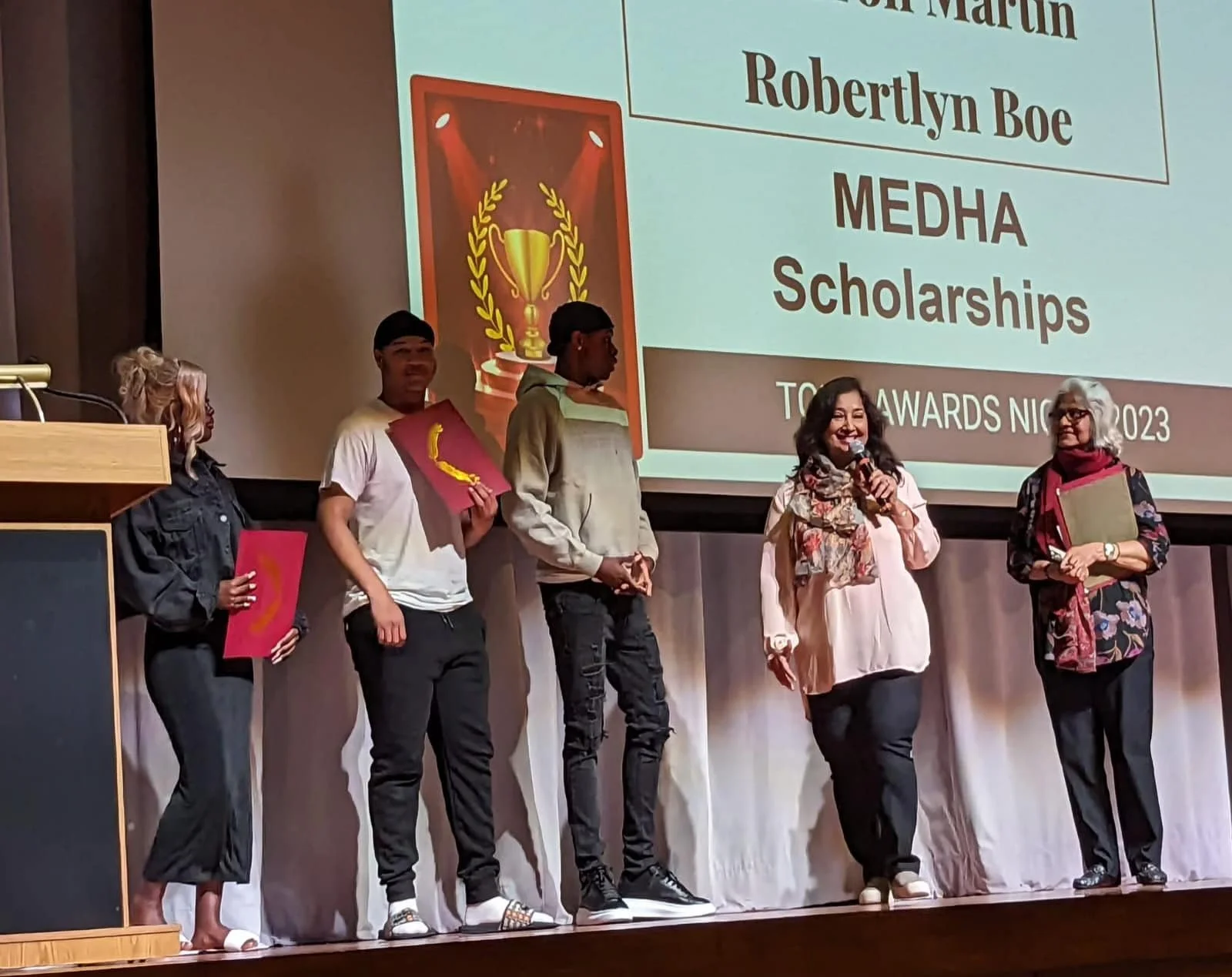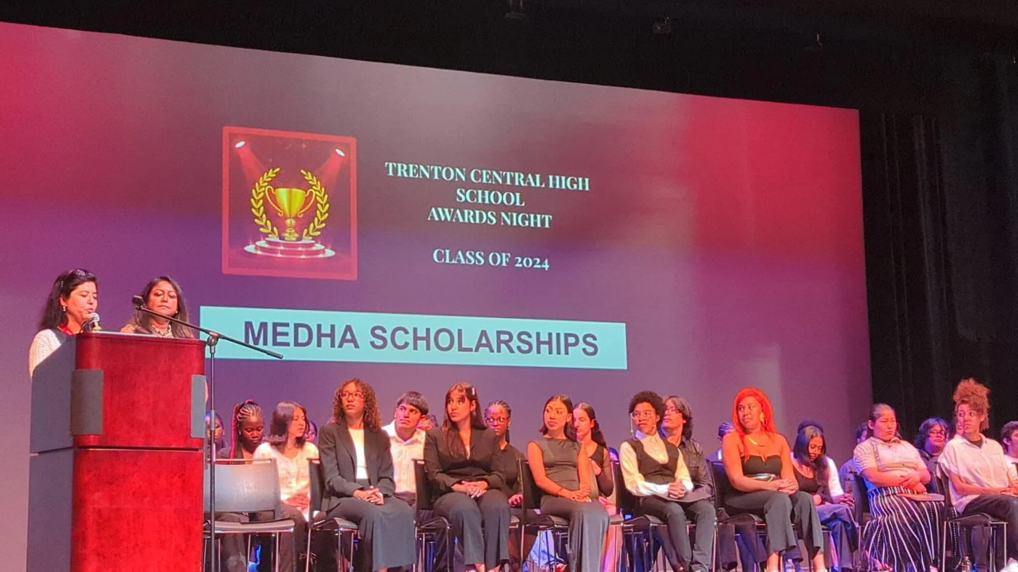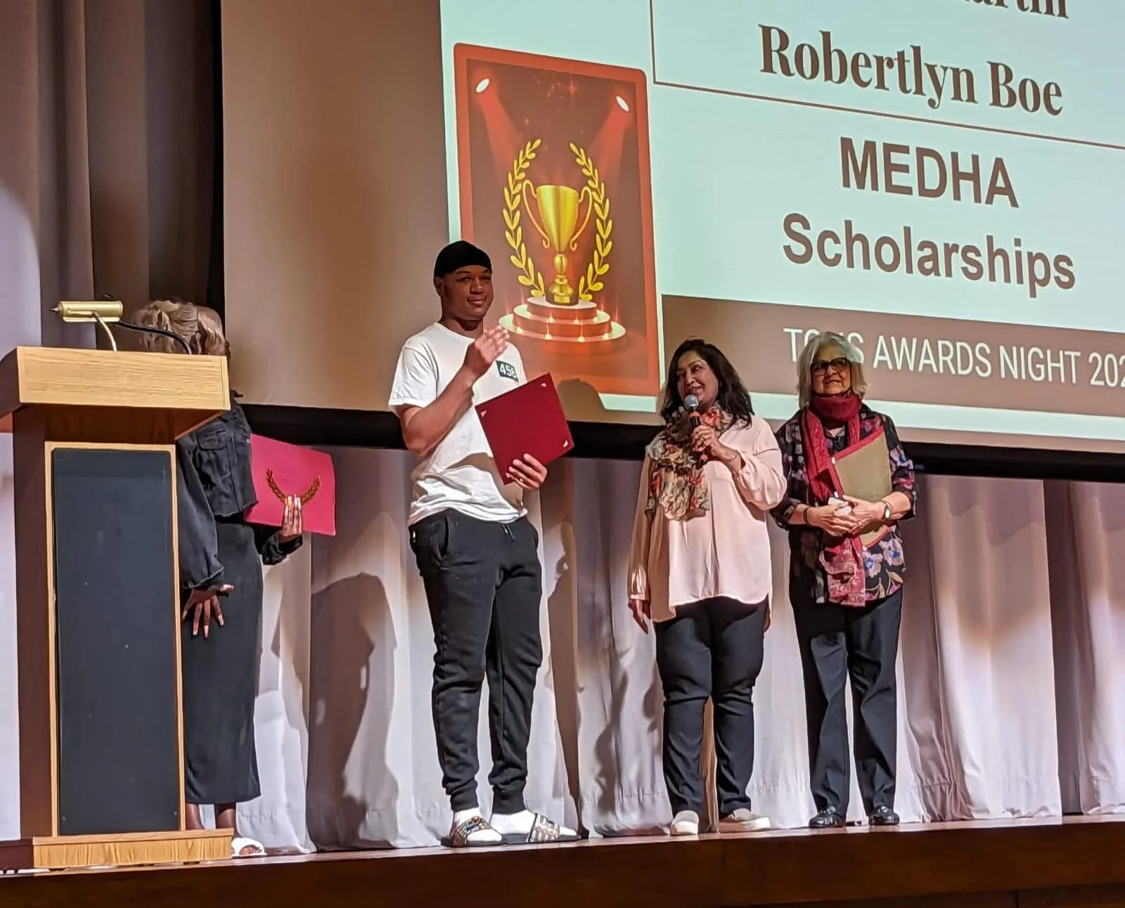 Medha was honored to present Scholarship Awards of $1000 each to three deserving college bound students from Trenton High School on June 13, 2024.